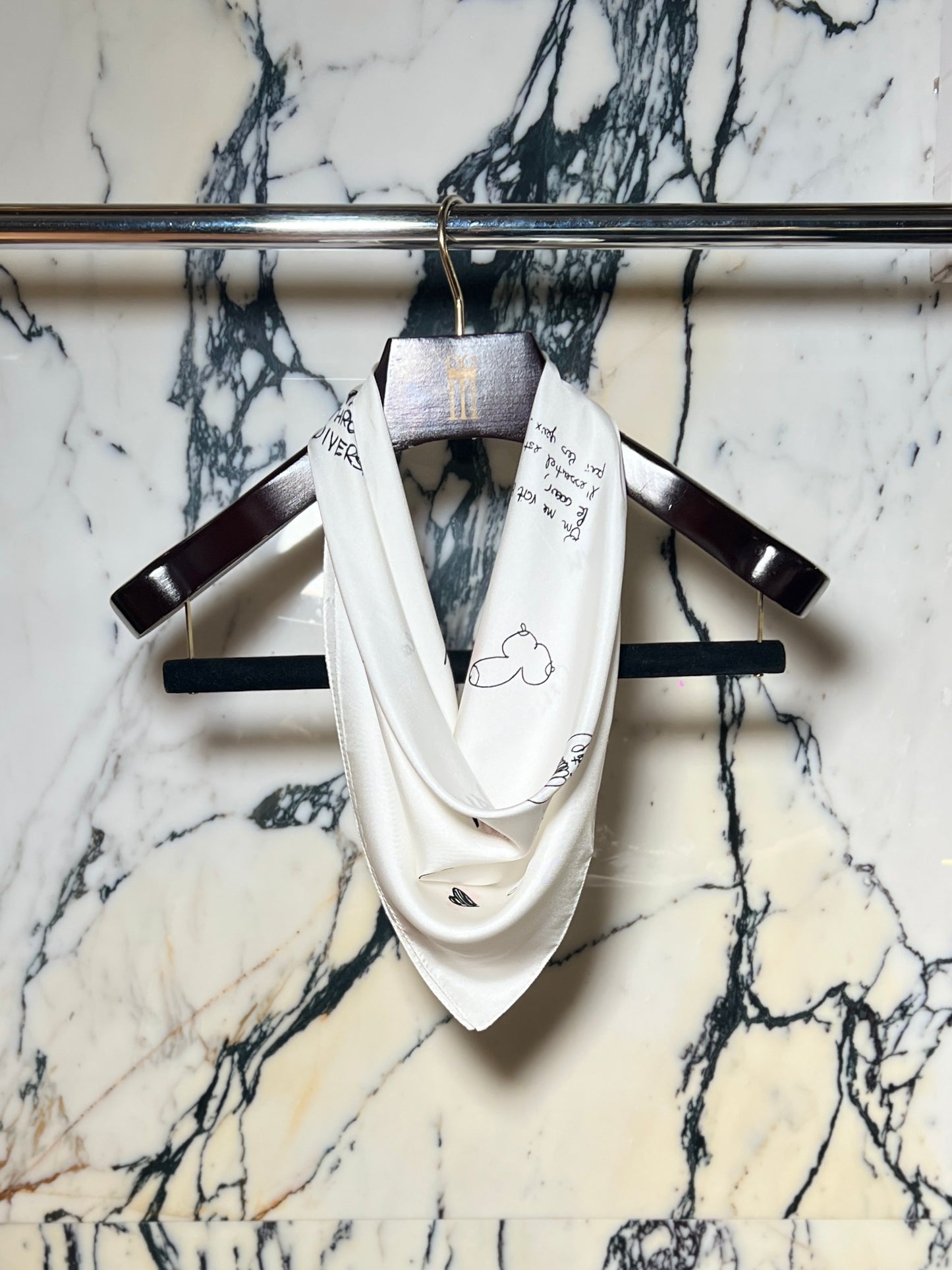 Introducing the epitome of effortless elegance, a sartorial marvel that effortlessly combines sophistication and versatility - the ivory Foulard. Handcrafted with exquisite Florentine craftsmanship, this fashion accessory exudes an understated allure that speaks volumes. Its ivory colour and graphic elements add a touch of joy to any ensemble, leaving an indelible impression wherever you go. The lightweight and flowy fabric drapes elegantly around the neck and can be styled in various ways, making it a versatile accessory that can complete any outfit for a special occasion. Wrap yourself in the artistry of this ivory Foulard and embrace a world of limitless possibilities.