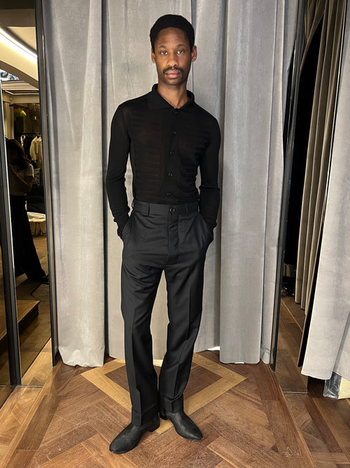 • Bib Long Sleeve Polo Ivory Men