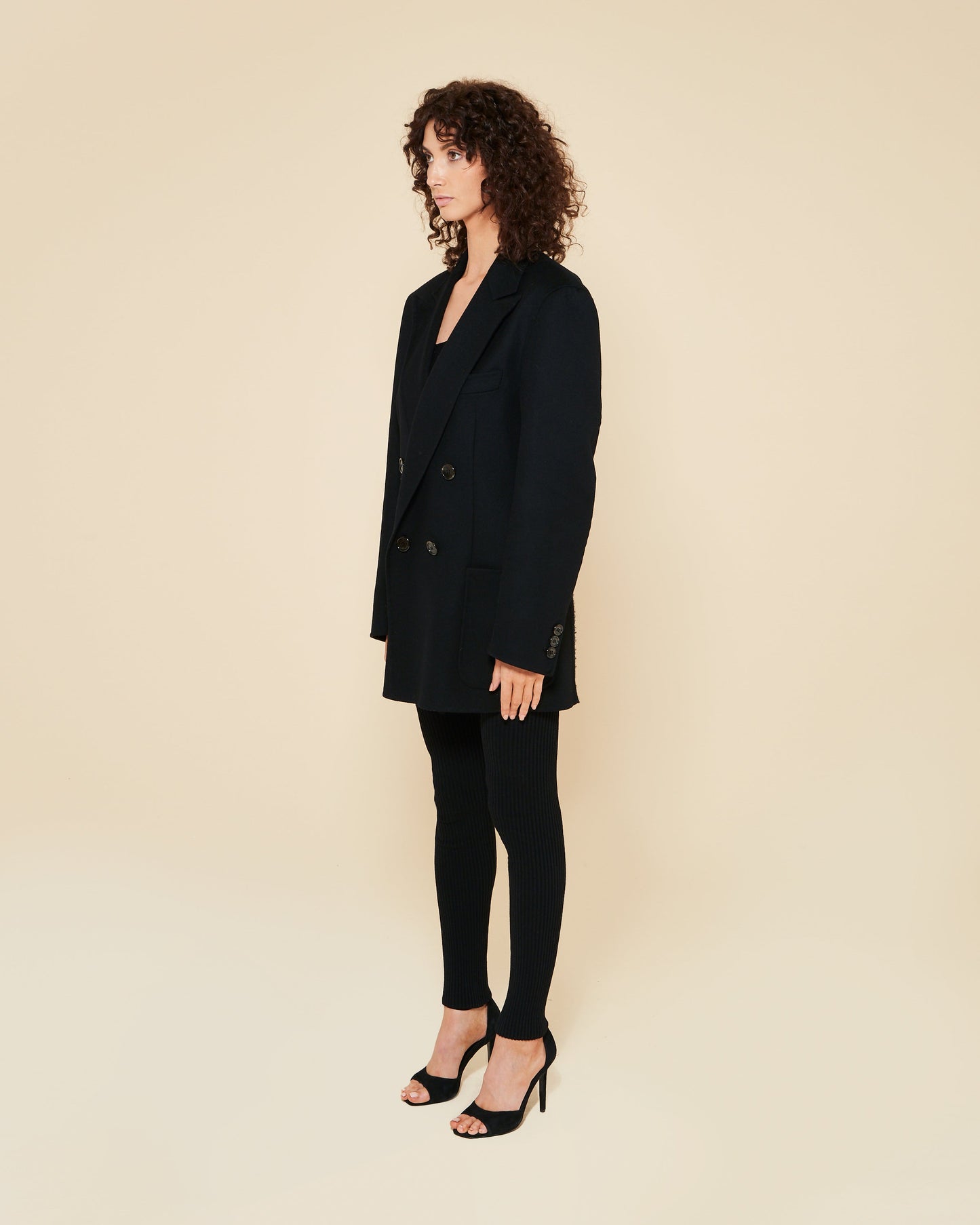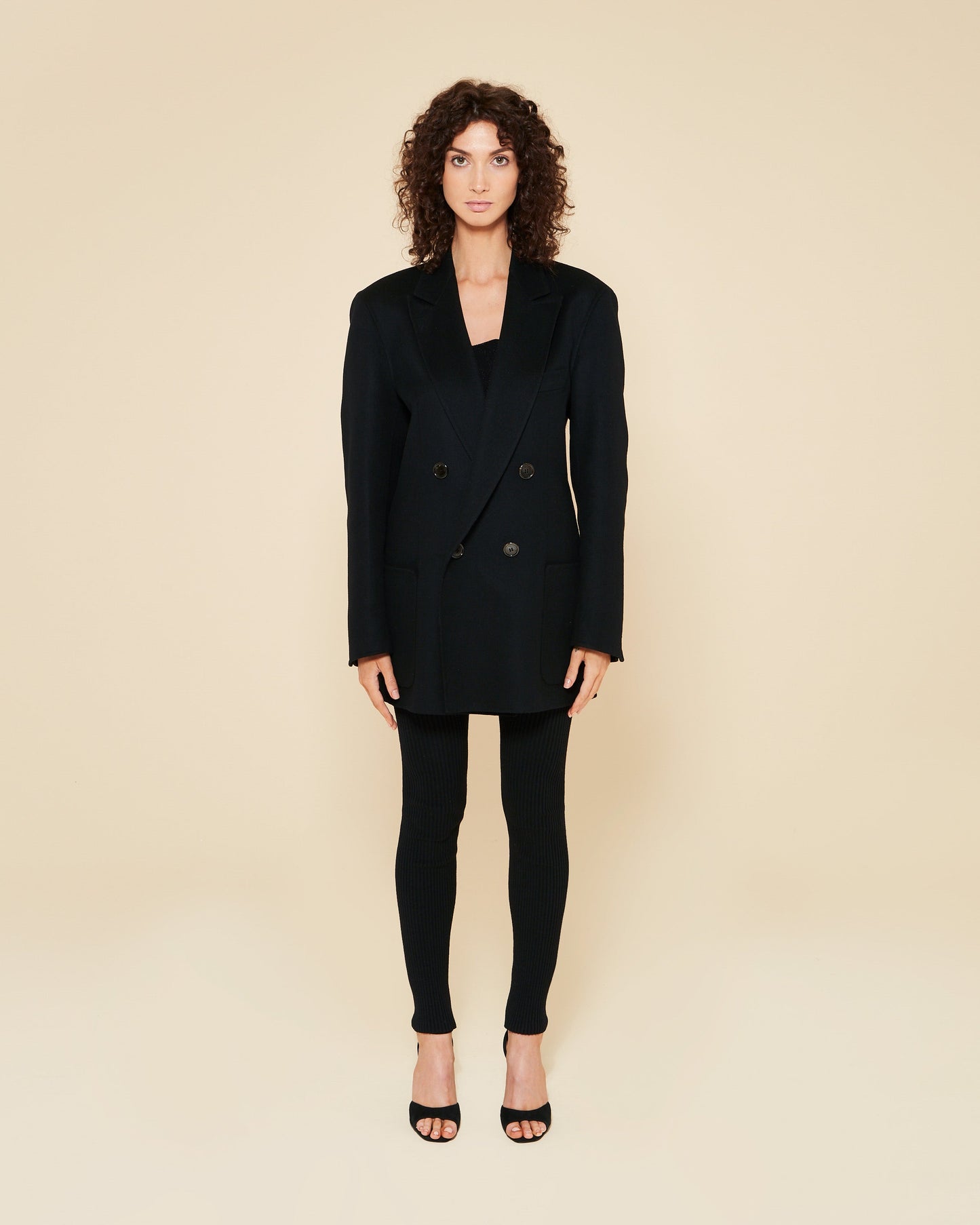 The Babbo Double Jacket for Women in Black is a high-quality and detailed piece crafted by a small business in Sicily. It features hidden double sewings, shoulder pads, and lined sleeves for durability, structure, and comfort. With its patch pockets, double-breasted design, and buttoned cuffs, this jacket exudes elegance and can be worn for both formal and casual occasions.