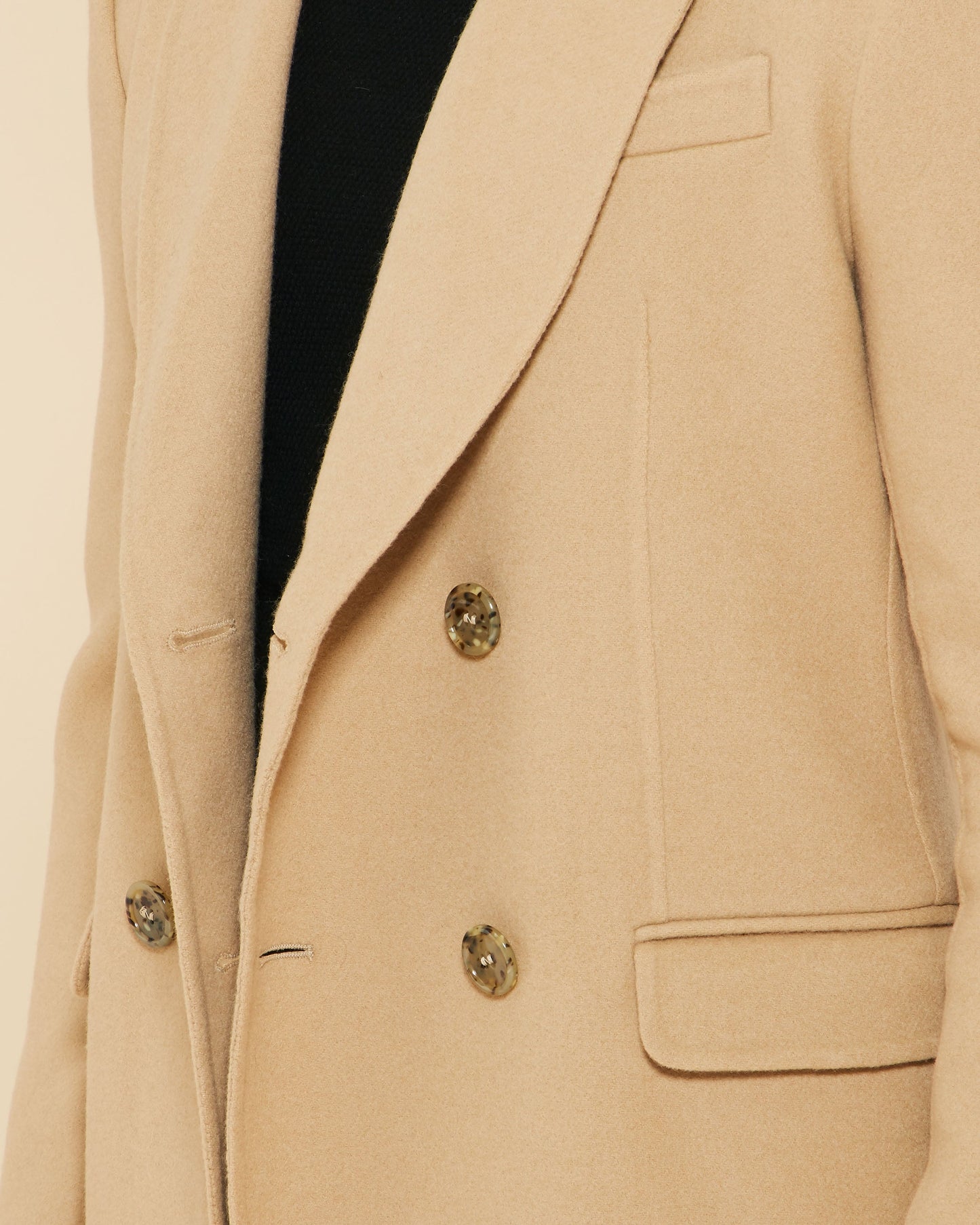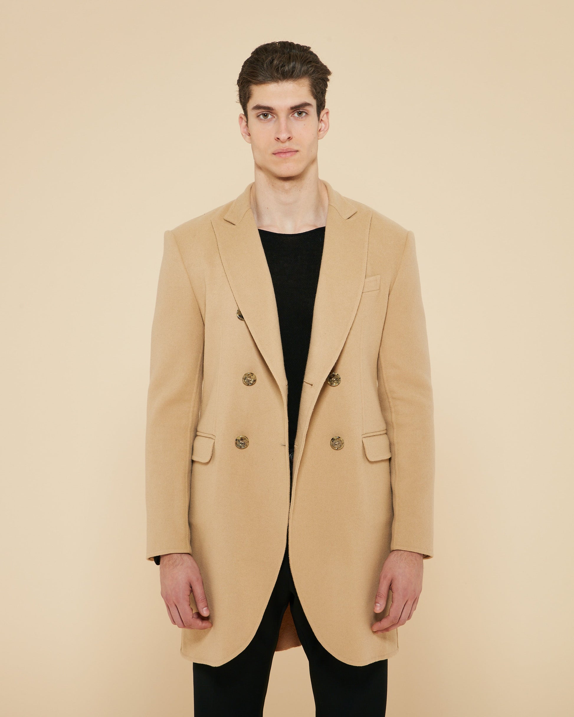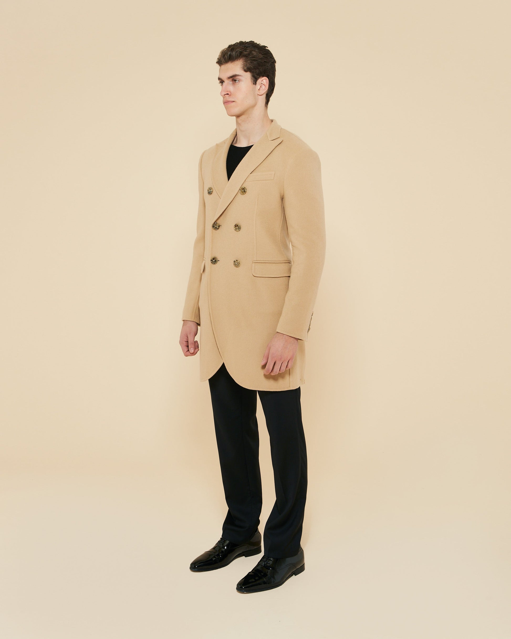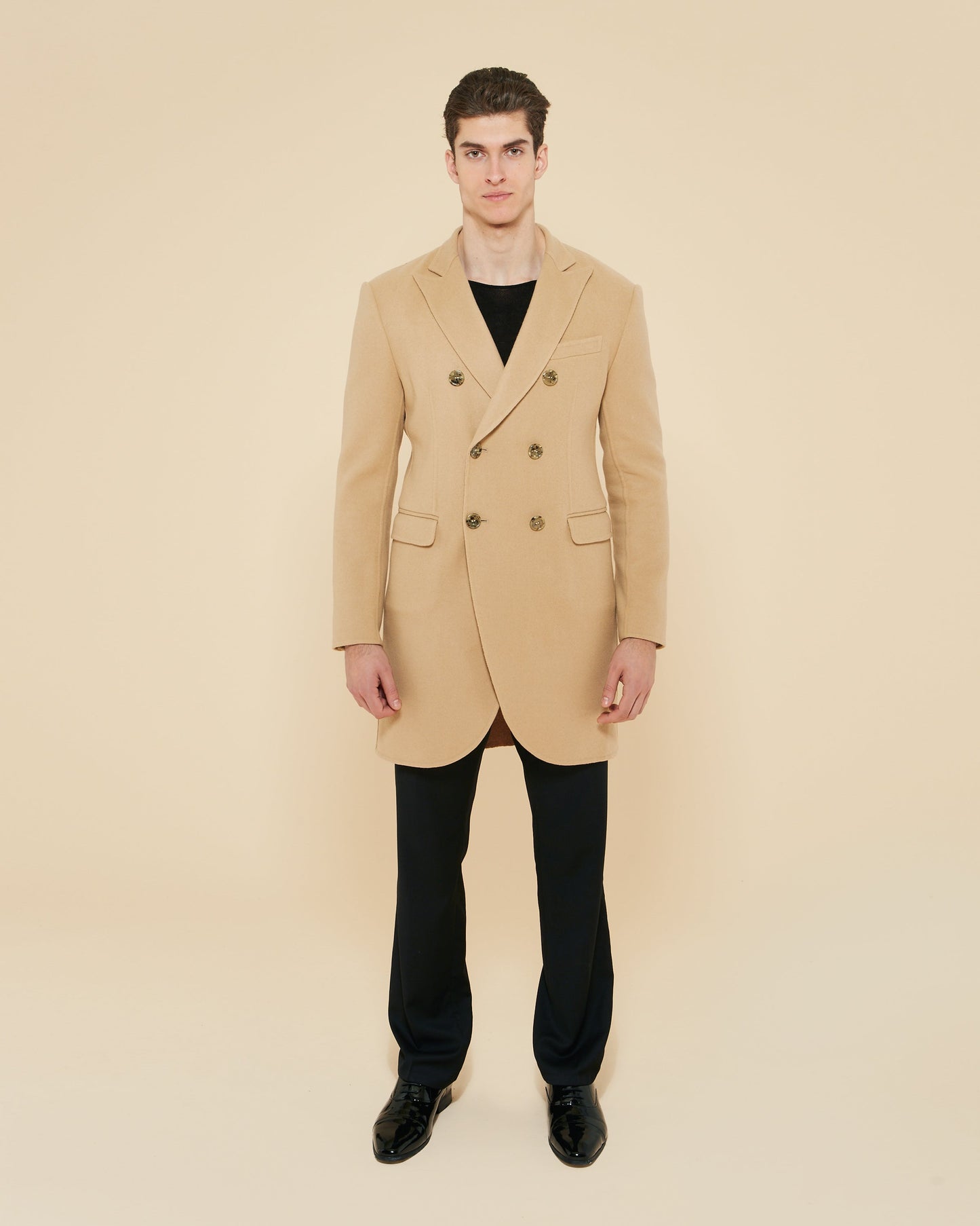 The Victor Overcoat is meticulously crafted by hand to guarantee the highest quality, featuring meticulous attention to detail such as generous flap pockets, a knitted back, double-breasted design, and hidden double sewings, resulting in a perfectly fitted and stylish overcoat.