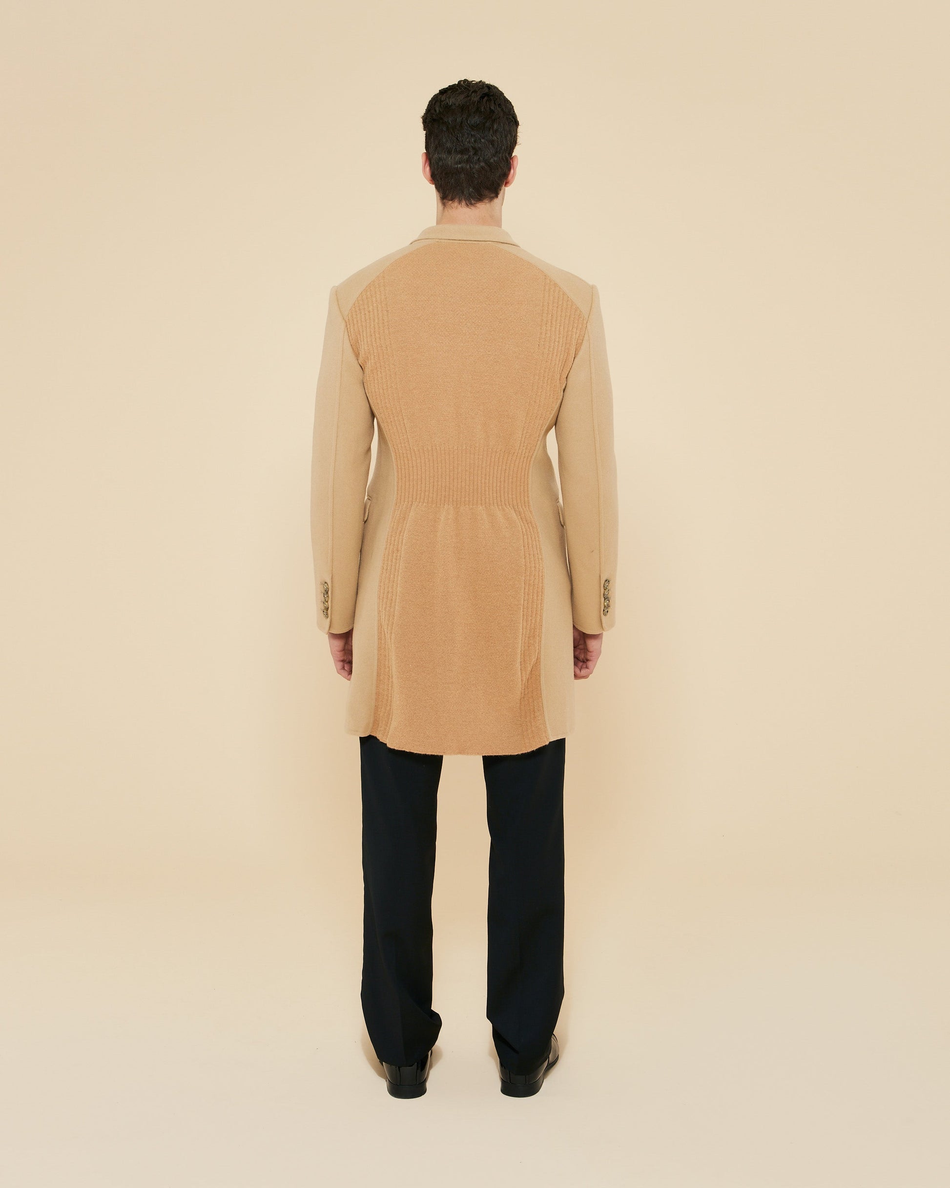 The Michael Double Over Coat for Men in Tan is a meticulously crafted overcoat made by a small artisanal business in Sicily. It features technical details such as generous flap pockets and intricately knitted back, adding sophistication to its design. Made from a premium blend of 100% WS knit, the coat offers exceptional comfort and durability, making it a versatile and stylish choice for any occasion.